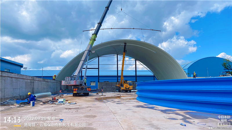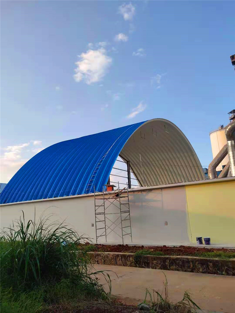 項目完工后,建設單位與業(yè)主單位聯(lián)合進行驗收,各項指標符合合同要求,施工結果獲得認可。拱形屋蓋安裝嚴密、排水順暢、結構牢固,適應華新水泥料棚嚴苛的工業(yè)使用環(huán)境。