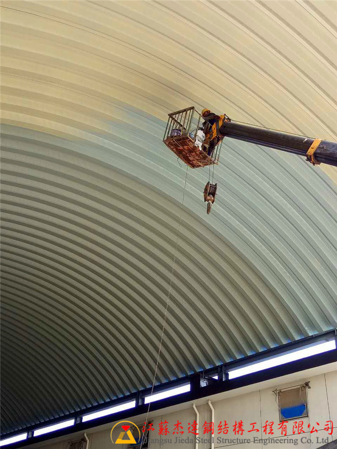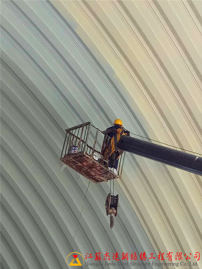 拱形屋頂因其結構特點,在一些工業建筑中需要進行防腐處理以延長使用壽命。本文介紹了江蘇杰達鋼結構工程有限公司在拱形屋頂背面噴涂防腐油漆的施工工藝及相關操作流程。